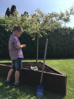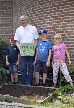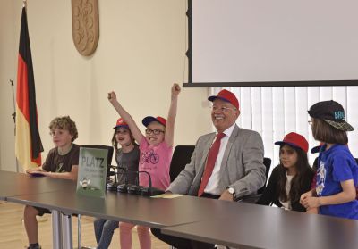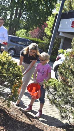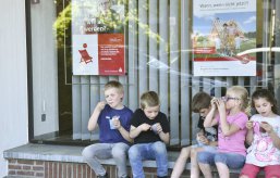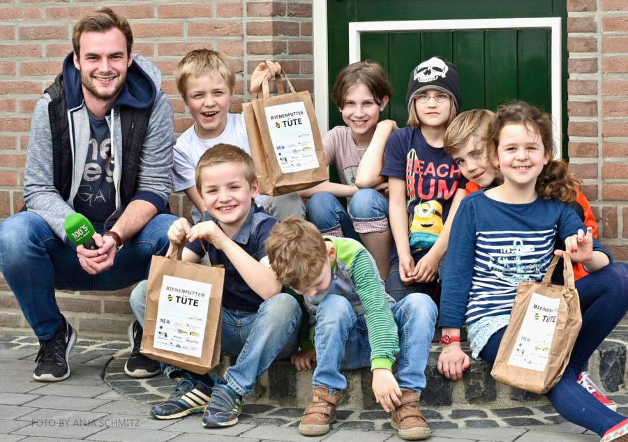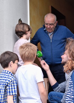 Tolle Begleitung zum Start der Austeilaktion: Radioreproter Sebastian von 100,5 begleitete die Kinder und befragte die Nachbarschaft.